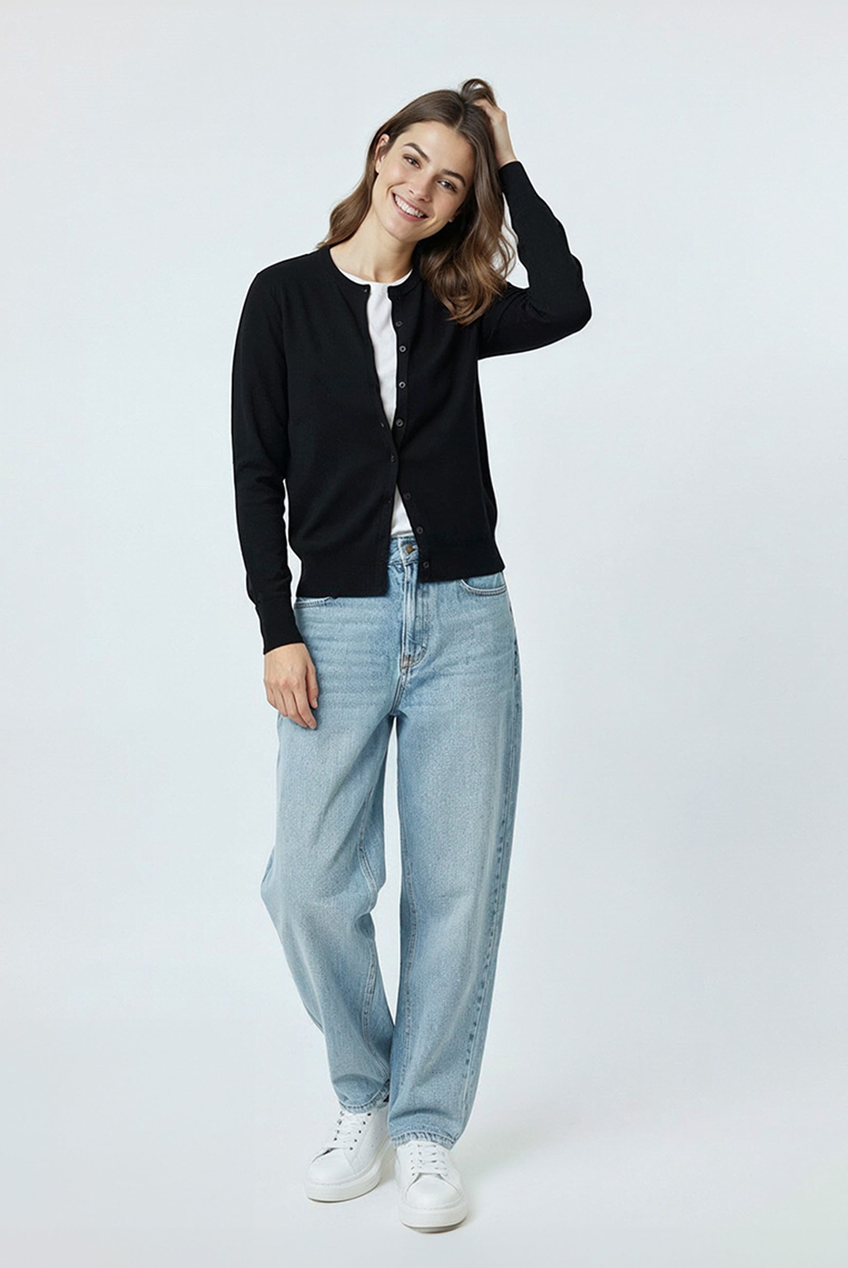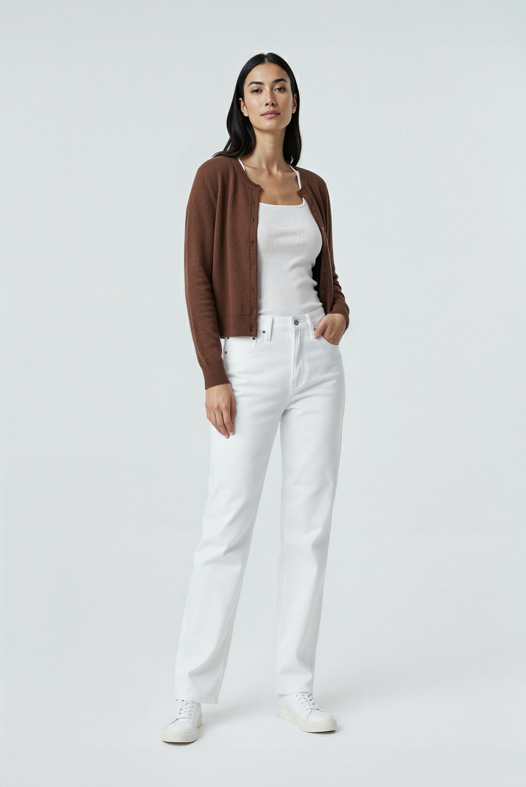 A simple, feminine, and elegant knit cardigan top that you can wear anytime, anywhere. Soft in feel and elegant in design, it offers a unique look that pairs with any outfit.